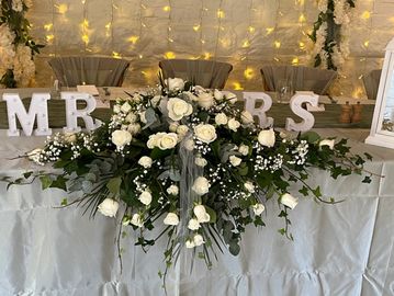 FRONT FACING TOP TABLE ARRANGEMENT (PRICE VARIES DEPENDING ON CHOICE OF FLOWERS AND SIZE)